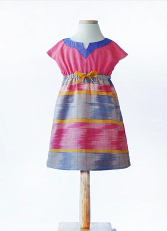 This fully lined dress can also be made as a tunic, with two different styles for each length. All views include built-in cap sleeves, Empire-waist elastic casing, and keyhole-with-button opening at back. Views A and C feature a ribbon bow detail at the front casing; Views B and D include a contrasting neck facing with V notch.