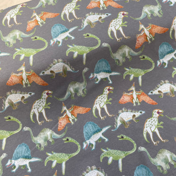 Playful Dinosaurs on Grey Cotton Jersey Fabric