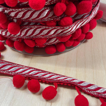 Pom Pom Ribbon Red and White 10mm