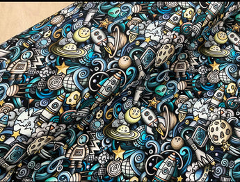 Space Doodle Cotton Jersey Fabric