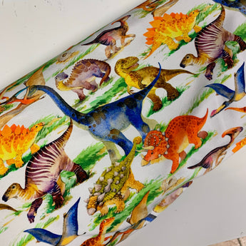 PRE ORDER Watercolour Dinosaurs Cotton Jersey - DUE IN STOCK END OF DECEMBER