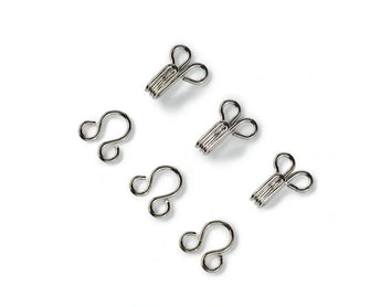 • Hooks and eyelets fasten trousers, skirts, and lingerie