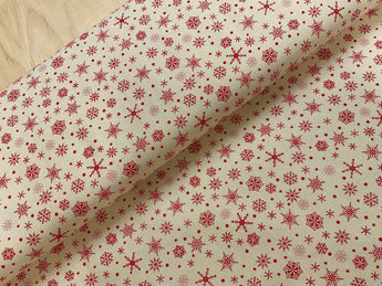Red Snowflakes on Natural Cotton