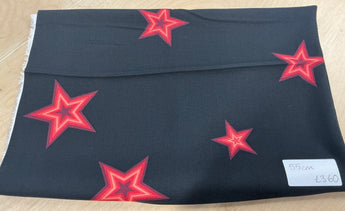 REMNANT - 55cm red stars on black viscose