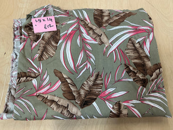 REMNANT - L1.5M x 1.4M Pink Leaves on Khaki Viscose