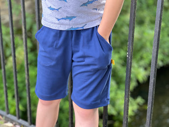 The Shoreline Shorts pattern is a simple but simply perfect shorts pattern. There are two lengths to choose from, optional pockets and an elasticated waist. The pattern is designed for medium weight knit fabrics such as French terry or sweatshirt fleece.