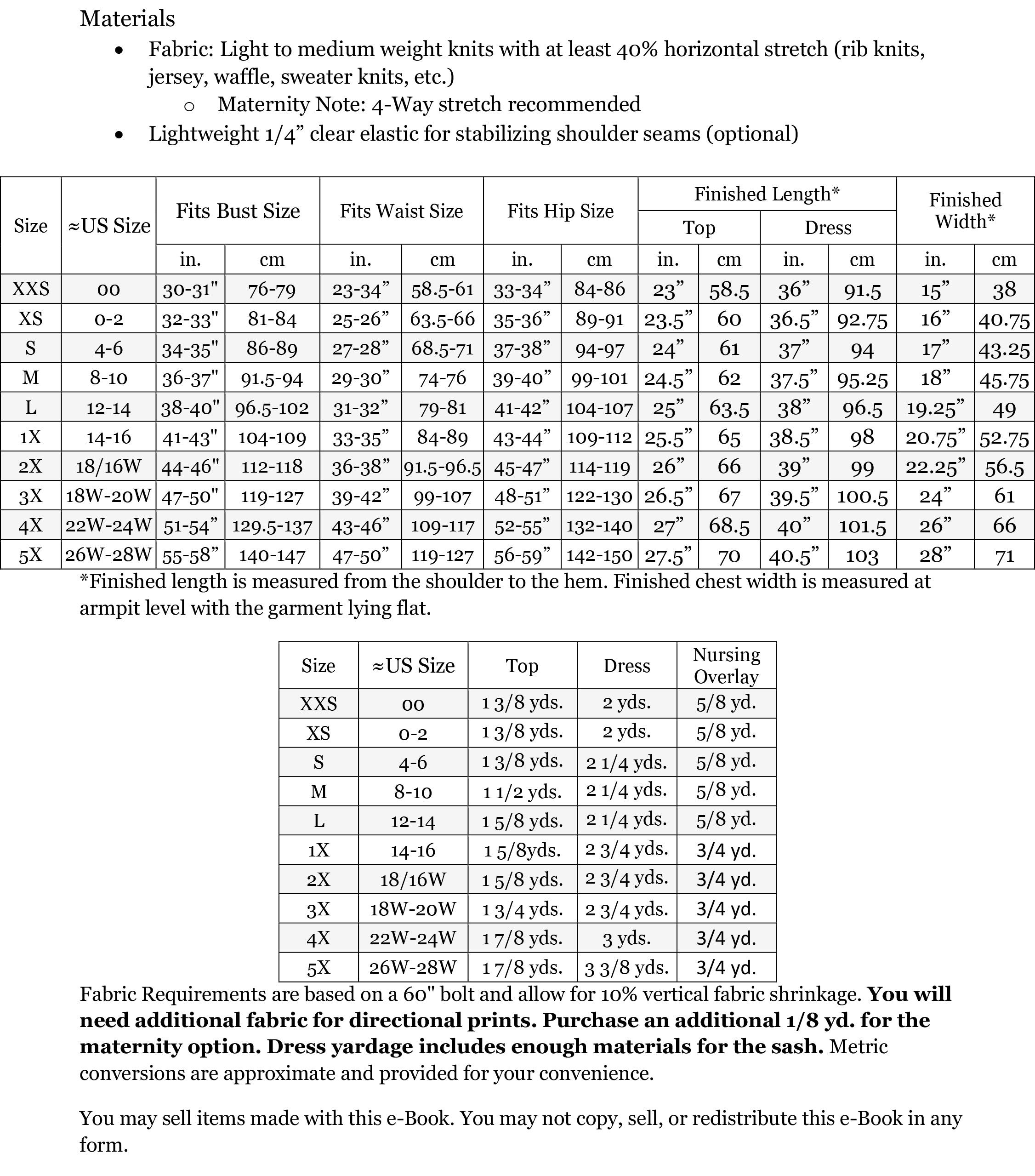 Sizes - XXS - 5X